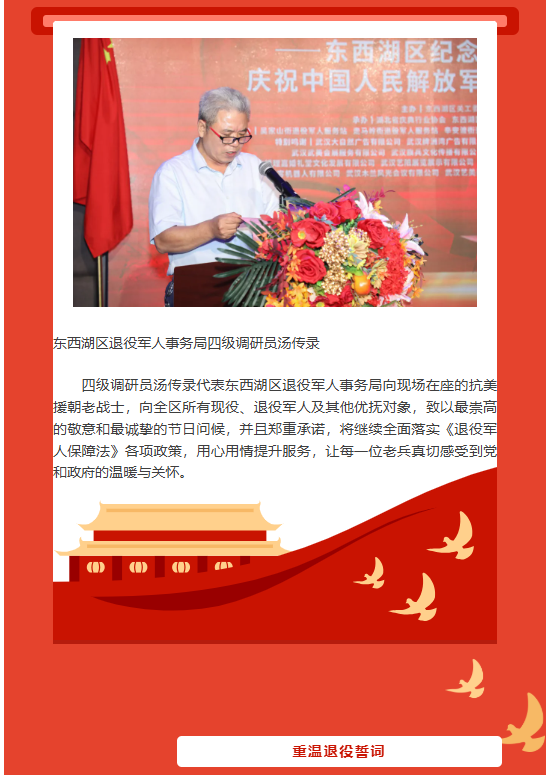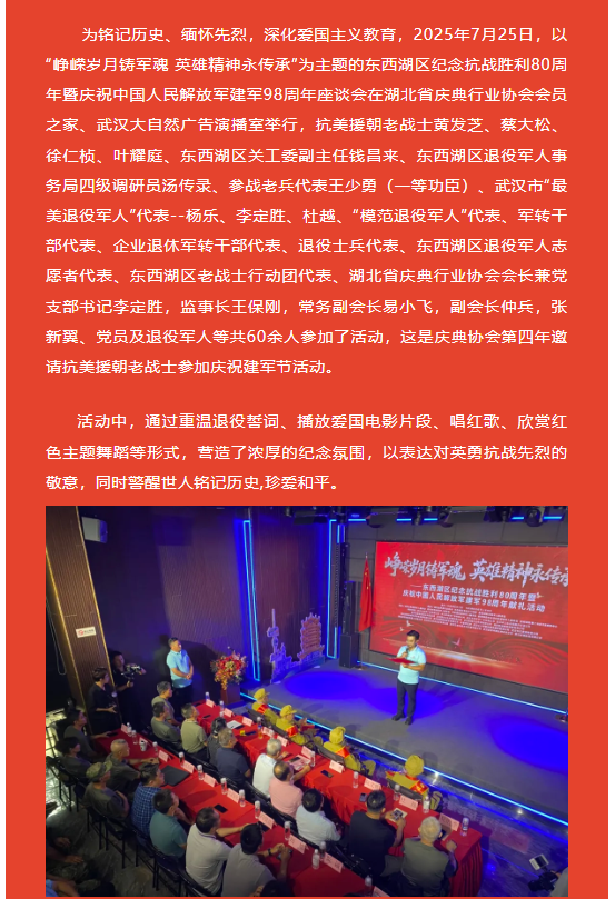 【庆协快讯】东西湖区纪念抗战胜利80周年暨庆祝中国人民解放军建军98周年活动